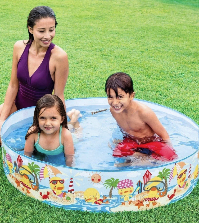 Intex надувний басейн 58477 «Утинный риф» в розмірі (122*25 см) з яскравим принтом мимишных качечок на пляжі стане однією з улюблених літніх іграшок Вашої дитини.